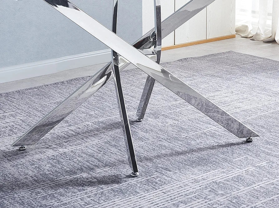 Style Name Wood york Item Shape Round Pieces Table & 4 White Chairs Item Dimensions 39"L x 18"w x 18"H Seat material Leather Table material Glass Colour White
